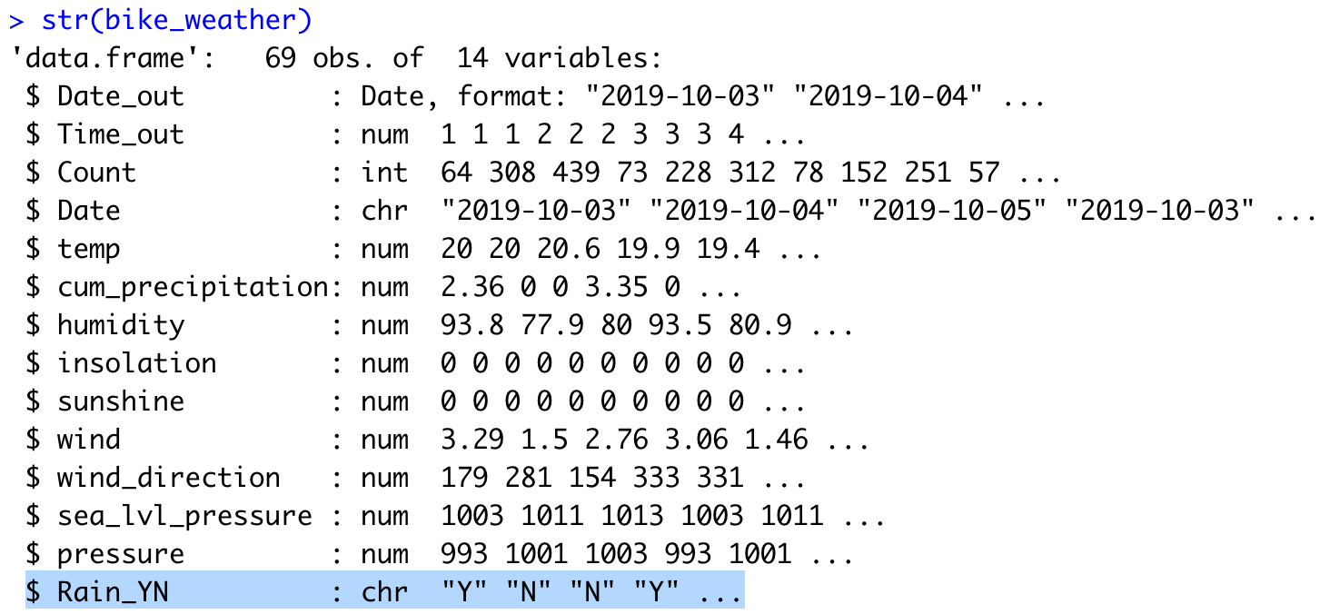 bike_weather$Rain_YN = 'N'
