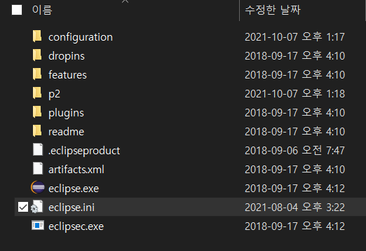 eclipse를 설치한 폴더 위치에 가면